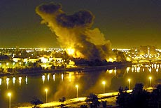 ▲轰炸巴格达 3月21日,在美军对伊拉克发动新一轮空袭中,巴格达至少有3幢建筑被毁坏。新华社发 |