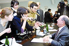▲欧佩克填补原油短缺 3月20日下午,欧佩克秘书长席尔瓦(右)在维也纳宣布,因美国对伊拉克开战,欧佩克准许成员国动用闲置的生产能力弥补战争可能造成的原油供应短缺。新华社记者林川摄 |
