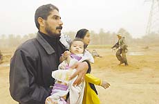 3月26日,在伊拉克南部城市纳西利耶附近,一个平民家庭被疏散。
