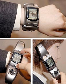 近日,日本NTT公司推出腕表式移动电话。这款被命名为“WRISTOMO”的腕表移动电话,被设计成腕表形状,兼具手表与手机功能,戴在手上时候是一只高贵典雅的电子手表,解开表带拉直后,表带变为听筒,腕表摇身一变而为手机。