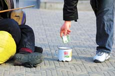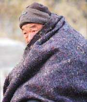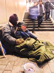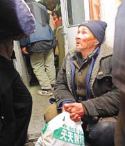 ▲2006年1月6日,流落到北京的老人和孩子在街头行乞。
