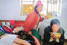 一大早,杨汝才就骑着一辆破旧的自行车从县城往家里赶。杨汝才的家住在林七乡的小杨堂庄,去年年底,他7岁的大女儿因先天风湿性心脏病不幸夭折,就埋在村东头的麦地里。那时,为了给女儿治病,他花光了家里所有的积蓄,还和爱人抱着孩子到北京四处求医,最后还是无济于事。前不久,爱人临产,他在县城找了一家私人医院帮着接生。“私人医院收费低一些,生孩子只花二三百元就可以了。”他说,“去县人民医院,前前后后,没有个七八百元,根本拿不下来。”亲戚们帮他在县城郊外找了一处民房,让他爱人出院后先住在那里,等做完了月子后再回家。大年二十九那天晚上,他和爱人还有刚出生的孩子一起就在那间民房度过。“这回老婆生孩子花的钱全是从亲戚朋友那里借来的。”他说:“不知以后什么时候能还清?”对于亲朋好友的周济,他在感激之余,更多的是不安。屋里取暖的火炉没有烟囱,为了防止煤气中毒,只好放在远离床头的窗户边,并每天把窗户开着。寒风乘虚而入,屋内并不比外面暖和多少。爱人穿着厚厚的棉衣,戴一顶橘红色的毛线帽,半躺在床上,把襁褓紧紧抱在怀里。