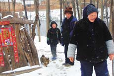 相比之下,张林海家里的那口老钟已经多年不走字了。或许是庄稼人的习惯,每天早晨天蒙蒙亮,张林海就醒了。上午儿女们带着年货过来看他,并一起去给逝去的母亲上坟。6年前,老伴患上了脑血栓,没过多久就去世了。为此,张家花光了所有的家底儿,还欠下了一大笔债。“在我们农村,欠债还钱是天经地义的事情,如果等我死了还不能把钱还上,那我的儿子也抬不起头来。”老人焦虑地说。为了早日还清家里的债,老人流落到了北京中关村附近,并在街头乞讨。老人说,在那里有很多和他境遇相同的人,大都是因为家里人生了病,欠了债,才背井离乡来到那里的。在北京乞讨的事情,张林海瞒着家人,说在外面帮人做卫生。年前,他从北京回家,专门给大儿子买了几百块钱的药。大儿子从小就得了病,瘫痪在床。回家后他还专门给孙子们每人两元的压岁钱。除去还债,他自己只剩下百十来块钱了,老人细心地把钱塞进了他的被子里。
