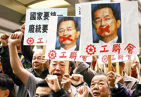 2006年2月28日,数十个“工联会”会员来到台湾中华旅行社香港办事处,抗议陈水扁终止“国家统一委员会”运作和终止“国家统一纲领”。