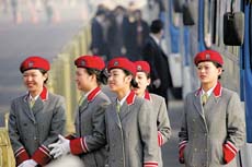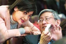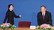 3月7日,外交部翻译周宇快步走到外长李肇星的身旁。当天下午,在十届全国人大四次会议举行的记者招待会上,她任译员。