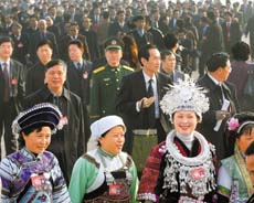 3月7日晚,在纳西族传统节日“三朵节”这个神圣的日子里,在京的纳西族同胞和各兄弟民族同胞邀请部分两会代表、委员欢聚一堂,共庆佳节。“三朵节”是纳西族的主要节日之一,是祭祀传说中的战神“三朵神”的传统活动。