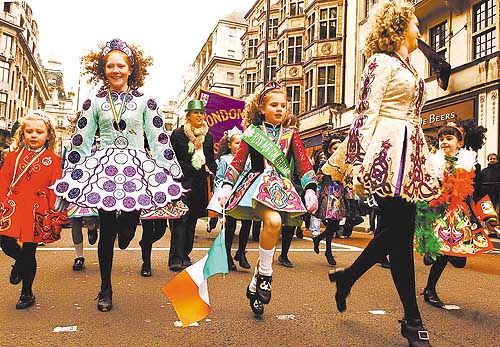 ▲3月12日,英国伦敦举行圣帕特里克节大游行。国新供