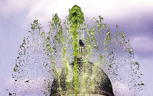 ▲3月12日,在英国伦敦的特拉法尔加广场上,喷泉都被染成绿色,以庆祝圣帕特里克节。国新供