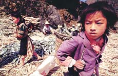 ▲9岁的云南女孩黄香菜因必须承担家务劳动而辍学。在中国实施“希望工程”和“春蕾计划”后,女童们辍学常常不是经济上的原因,而是繁重的家务劳动。
