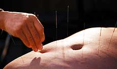 ▲黄佳鑫接受针灸减肥治疗。 |