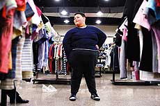 | ▲黄佳鑫在街头服装店,为无法买到合适的衣服而犯愁。 |
