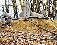 图:淮海战役双堆集烈士陵园位于安徽省濉溪县双堆集镇,被中宣部列为“全国爱国主义教育示范基地”。然而,这样一个庄严肃穆的地方,如今却成了喧闹的集市:陵墓被随意践踏,大小100多个摊位散布其中,车流人流穿梭于陵园墓地之间。4月3日,两个小贩坐在烈士陵墓上兜售饰品。新华社记者 李健摄