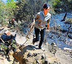住在六岔路村的张忠明没有转移下山,他一直留在村里为扑火队员们送水。每天他都要赶着马到很远的地方去驮水,来回好几趟。“一路上抢险车来来往往,扬起高高的尘土,马儿的头摇个不停。”他说,六岔路是个彝族村寨,是当地的贫困村。“除了种粮食外,上山采松茸和野生菌是乡亲们的主要经济来源。行情好的时候,每公斤松茸能卖到好几百元呢。大火过后,山上再也找不到松茸了”。