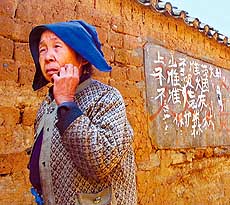 ▲小妥吉村,宣传森林防火的标语写在村口。 |