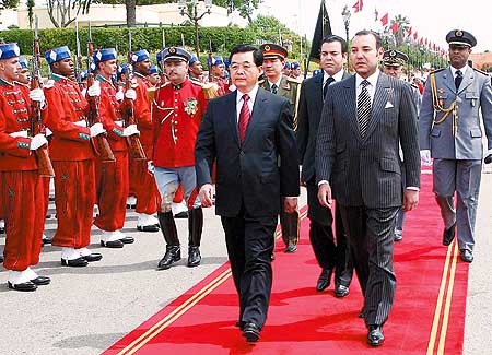 会谈前,胡锦涛出席了穆罕默德六世为他举行的隆重欢迎仪式。