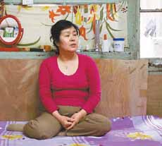 2006年5月,北京东直门医院不远的胡同里,老人们凑成堆,享受着树叶间漏下的点点阳光。拐角的一间平房里,张金萍静静地坐着,闭着眼,想象着阳光抚摸在身上的温暖。
