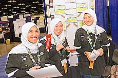 印第安纳波利斯展览中心内人声鼎沸,每一位参赛的青少年亲手布置展位,并向来宾津津有味地阐述着他们的构思、研究过程和结论。在此之前,他们曾接受了专家评委们严格的考察,与获得诺贝尔奖的老科学家们激情对话。