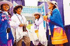 | ▲身着朝鲜族传统服装的韩国女生李正秀与来自北京清华附中身着唐装的朱若辰进行切磋。 |