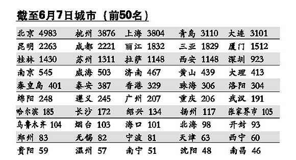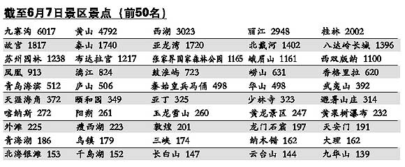 “中国青年喜爱的旅游目的地评选”滚动排行榜