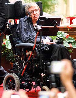 照片:6月19日,斯蒂芬·霍金在2006年北京国际弦理论大会上。当日,2006年北京国际弦理论大会在北京人民大会堂开幕。世界科学大师斯蒂芬·霍金出席此次会议并作学术报告。 张成钢摄