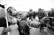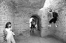 ▲5月21日,一个孩子在进行改造的榆林古城内玩耍。作为历史上的九镇之一,陕西榆林在明长城沿线极为重要。目前,总投资9500万元的榆林古城步行街整治工程已全面开工。 |