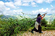 | ▲等娥村的烟农砍树围田,准备播种庄稼。他们只懂得刀耕火种的原始耕作方式,对于深耕细作要一步步地接受和掌握。 |