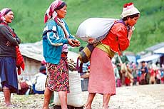 ▲岩城区街子寨的集市上,一些烟农来购买粮食。目前,佤邦烟农种的粮只够吃半年的现象较为普遍,他们只有用原来的少量积蓄买粮或相互接济度过饥荒。 |