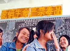 ▲勐冒县中学的教室里醒目地挂着禁毒标语,这样的宣传在佤邦时有看到。 |