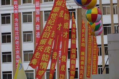 8月14日,沈阳市街边某大楼前,悬挂着数条反映第二届“振兴杯”全国青年职业技能大赛的宣传条幅。作为东北老工业基地的沈阳,今年是第二次承办此项赛事。随着大赛的日益临近,沈阳市街头关于青工比赛的氛围也日渐浓郁。