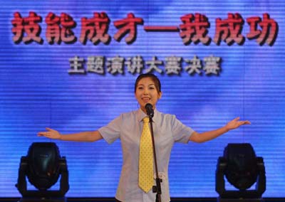获得一等奖的来自特变电工沈阳变压器集团有限公司的选手王丹在激情演讲