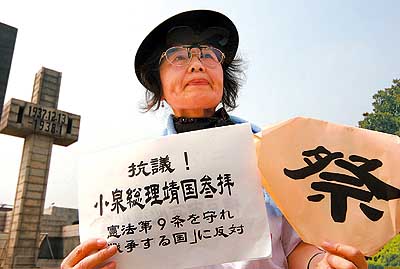 8月15日,日本“铭心会”、日本“日中友好希望之翼”、日本“神户南京心连心会”等3个访华团来到侵华日军南京大屠杀遇难同胞纪念馆,祭奠在1937年被侵华日军杀害的30万中国人民,并对当日早晨日本首相小泉纯一郎参拜供奉有二战甲级战犯的靖国神社的行径表示抗议。