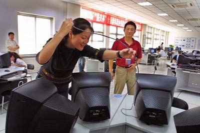 8月16日下午,多媒体作品制作员及网络管理员工种的比赛在沈阳市交通教育学校紧张进行。 本届大赛除继续保留原有的钳工、电工工种比赛外,还专门新添了和电脑技术密切相关的赛事。随着社会的发展,技术工人已经不再是传统意义上的体力劳动者,脑力劳动的分量越来越重。