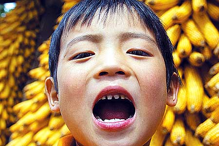 ▲6岁的女孩董明霞。据了解,受铅污染影响,村里孩子们的牙齿普遍长不全。