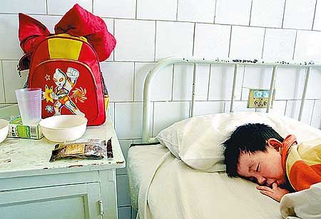 一周前,这所小学的校长杨炳荣统计发现,全校200多名学生只有25名同学来上课,其余的都在县内外看病、化验。这里的学生80%来自水阳乡新寺村。从8月开始,因发现大量村民血铅中毒而引起的恐慌、愤怒,就一直弥漫在这个山村里。到周末,除在西安和县城住院的一部分孩子,大多数同学已返校正常上课。村边的徽县有色金属冶炼公司已被勒令停产,炼铅设备也于9月9日开始拆除。