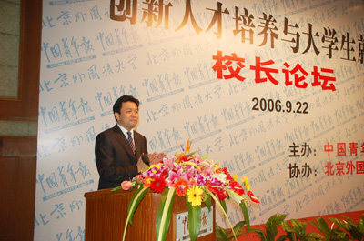 共青团中央书记处常务书记杨岳在论坛现场致辞。