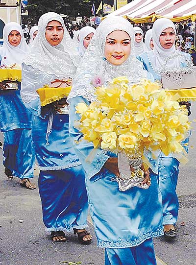 9月24日,泰国的穆斯林妇女在那拉提瓦的街道上参加庆祝活动。今年全世界的穆斯林从9月23日起先后进入斋月(又称“拉玛丹”)。对他们来说,斋月是一年中最吉祥、最高贵的月份,是陶冶性情、净化灵魂的最佳时间。