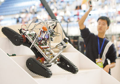 10月7日,来自世界各地的近500支队伍1300多名选手在江苏省苏州市独墅湖高等教育区进行机器人足球等10多个项目的比赛。 戚振林摄