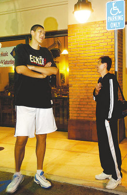 |    身高比姚明还高10厘米,年龄比姚明还小5岁的孙明明正在一步步地向NBA靠拢。    孙明明现在在美国加紧训练,备战NBDL联赛。NBDL是比NBA低一档次的联盟,很多NBA球星都是在这个联盟中成长起来的,该联盟也被称作NBA球星的摇篮。孙明明效力于该联盟的道奇城市传奇队。    道奇城市传奇队的总经理兼首席教练奥斯邦表示,他第一次看到身高2米36的孙明明就产生了很深的印象,他说:“这个大个子不需要起跳就能扣篮。”在看过孙明明打球之后,奥斯邦发现孙明明不仅具有身高优势,而且动作也比较灵活,在比赛、训练中能很快领会教练意图。奥斯邦希望把孙明明打造成第二个姚明:“如果能加盟NBA,孙明明将成为NBA历史上最高的球员。”目前,NBA最高的球员是小牛队2米29的布拉德利。    进入NBA是孙明明最大的梦想。“姚明是中国人的骄傲,也是我的偶像。”孙明明说,“很多记者问我想不想成为姚明那样的明星?我告诉他们,如果我更加努力地训练,相信有一天我也能做到。”    孙明明于2005年2月来到美国,他的经纪人查尔斯承认,自己面临着很大的风险。因为当时孙明明在体检时被查出脑垂体分泌有问题,需要马上做手术才能恢复正常,为此经纪人已经垫付了10万美元的医疗费。幸运的是,孙明明得到了全美最好的医生的医治,现在已经恢复正常。“我只想帮助这个大家伙进入NBA。”查尔斯说。    自从孙明明踏上美国的第一天起,就受到美国媒体的高度关注。10月15日,美国电视“探索”频道将播出一个名为“解剖巨人”的专题片,该片跟踪孙明明在中国和美国的生活足迹,拍摄了1年多的时间。片中还会播出孙明明脑部手术的剪辑,一些美国专家还会对他的身体和脑部发育作出分析。    2005年,孙明明参加了NBA选秀,但不幸落选,很多球队认为他还缺乏足够的精力和体力。孙明明曾经接到过湖人队和太阳队训练营的邀请,虽然没能入选,但是NBA球队还是对他表示出了兴趣。    经过1年的训练,孙明明的身体素质正在逐步提高。现在孙明明每场比赛能打5分钟,查尔斯说,如果孙明明的体力能达到20分钟的水平,进军NBA的可能性会大大增加。    “现在还需要一点时间和耐心,他今年刚刚23岁,还有提升的空间。”奥斯邦说,“现在,他还需要提高脚步移动的速度、体能水平,还需要降低体重,增加肌肉。”    奥斯邦说,孙明明现在已经能做到每天训练5个小时,这已经很不简单了。    “从来到美国的第一天开始,进入NBA的梦想就没有改变过。”孙明明说,“即便没有成功,我也不会感到后悔。”    照片:在美国打球和生活的孙明明。 克雷曼摄     |