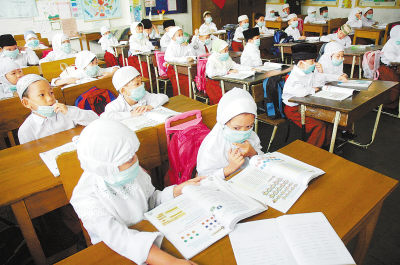 10月9日,在印度尼西亚苏门答腊岛南部的巨港,一些小学生戴着口罩上学,以避免受到空气污染的影响。近两个星期以来,印尼的加里曼丹和苏门答腊等地发生了大面积的森林火灾。大火造成的烟雾致使大批航班延误,学校停课,许多人患了呼吸道疾病。