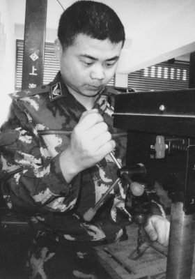 新训期间,他购买了一大摞的电脑书籍,利用课余的点滴时间进行学习。为得到上机操作的时间和机会,周末,别的战友都在一起看电视、做游戏,他却请假到同一大院内的一中队上机操作,还常常向新训大队长报告,请求新训大队给他上机操作的机会。新训队领导见他这么爱学习,破例允许他在课余时间到新训队微机上操作。