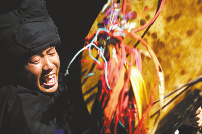 近日,在北京798大山子艺术区,一支来自云南边远山区的民间艺人团队以具有民族特色的服装、道具、乐器和不加雕琢的唱腔、舞蹈,演绎了大山深处的劳作、祈祷以及原始祭献仪式。本报记者 李建泉摄