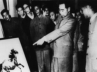1965年,周恩来总理视察广交会丝绸馆。资料图片