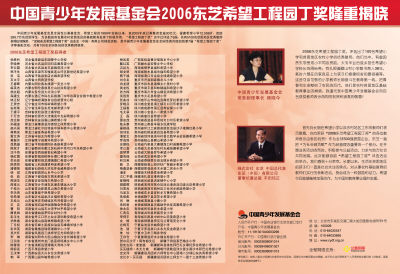 中国青少年发展基金会2006东芝希望工程园丁奖隆重揭晓