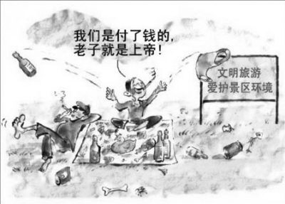 早就听外国人歧视一些中国人的不文明行为。据媒体报道:“脏、吵、抢、粗、俗、窘、泼”等七种陋习,已使向内地游客开放的一些国家的居民,对内地游客日益排斥。例如“脏”,内地游客有的乱扔垃圾;在英国海德公园有内地游客当众脱鞋搔痒,引来英国老太太耻笑。又如“吵”,内地游客出外旅游都是三五成群,似乎有讲不完的话,在飞机上、车船上、餐厅甚至酒店,毫无顾忌大声喧哗,无视别人的存在。再如“抢”,一些内地游客不守规则,不讲秩序,做什么都要抢先,在国际航班上,对空中小姐的劝导充耳不闻,任意摆放行李,影响后面旅客。至于“粗”,指的是在一些内地游客身上看不到对他人的尊重及礼仪,一些旅游景点和公共场合是禁烟区,依然一烟在手,吞云吐雾。而“俗”指的是有的游客把自己在家的习惯带出门,比如在豪华酒楼用餐,竟脱鞋赤脚搁在椅子上或盘腿而坐还自得其乐。此外,“窘”指的是有些游客常在不适当场合穿戴不恰当的衣饰,令人尴尬:有的穿西装蹲在街头,有的身穿睡衣在酒店房间串门。“泼”则是说,在海外遇到纠纷的时候,有些人显得十分“团结”,火气特别大,不是粗言恶语就是拳脚相加。