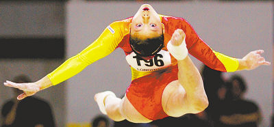 10月17日,2006年体操世锦赛结束了女子团体预赛的争夺,进入全能决赛的选手也随之产生。图为中国的周卓茹在平衡木的比赛中。马特摄