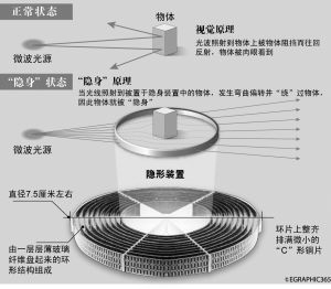 |        美国和英国科学家10月19日宣布,他们研制出世界上首个从视觉上能实现“二维隐形”技术的试验装置,一种由多种材料(其中可能包括金属、陶瓷和纤维合成物等)制成的“隐形斗篷”。它能让一个铜柱不被微波发现,达到基本隐形的效果。    “隐形斗篷”不同于隐形技术,后者通过减小雷达波反射的横截面,使雷达难以跟踪飞机轨迹。“隐形斗篷”则针对辐射波的特定频段,设法让雷达波或其他形式的波绕过物体,就像物体根本不存在一样。该装置的发明者之一、美国杜克大学科学家戴维·史密斯说:“‘隐形斗篷’既减少了物体反射的光线,也减小了物体投下的阴影。而反射的光线和投下的阴影都会使物体被发现。”    史密斯说,目前研制出的“隐形斗篷”只是二维的,铜柱仍会投下一小块阴影。他们计划下一步研制三维“隐形斗篷”,让阴影彻底消失。    科学家认为,这一成果表明真正的视觉隐形装置将很快问世。    (李平 文并供图)     |