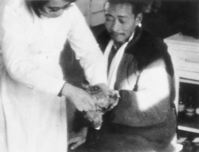 图四:农民抬着伤员,来江南水泥厂小医院和急诊室求治。福斯特摄(资料图片)