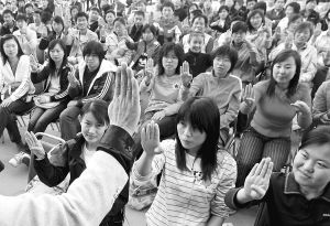 11月5日,在济南长清大学科技园区,千名大学生向残联的老师学习手语,以便将来更好地助残扶残。 周青先摄