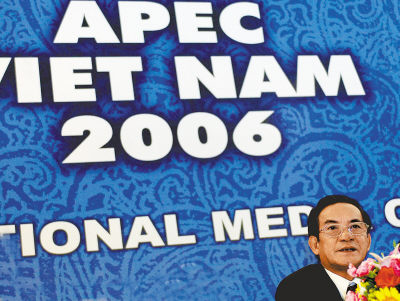 11月13日,亚太经合组织高官会主席、越南副外长黎功奉在新闻发布会上回答记者提问。当日,2006年亚太经合组织(APEC)高官会在越南首都河内闭幕,重启世界贸易组织多哈回合谈判成为会议的焦点议题。新华社记者公磊摄