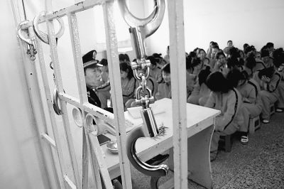 某戒毒所内一场景。坚硬的铁门和冷冰冰的手铐给人一种恐惧感。赵敬东摄